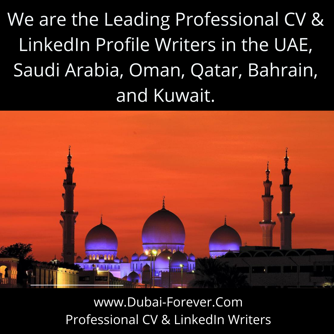 1. CV Writing Service - Professional CV, Resume, and LinkedIn Writers in Dubai/ UAE/ GCC: www.Dubai-Forever.Com